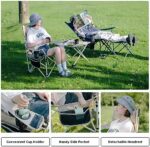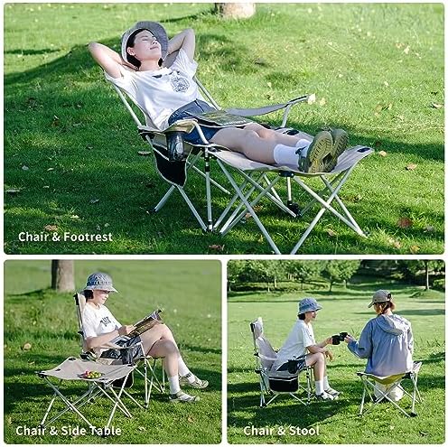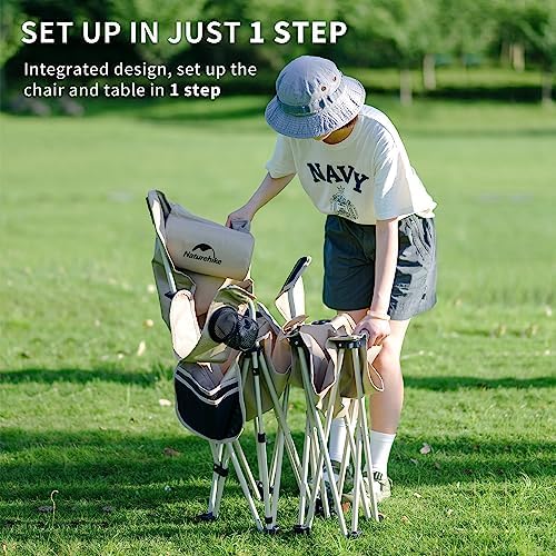 Naturehike 3-IN-1 Reclining Camping Chair, Folding Portable Lounge Chair with Detachable Footrest/Table/Stool, Headrest, Cup Holder and Storage Bag, Adjustable Camping Chair Recliner with Carry Bag