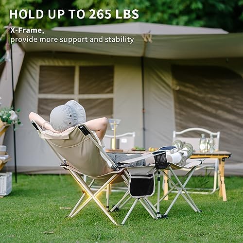 [PORTABLE & LIGHTWEIGHT] The folding camping recliner folds up quickly and pack small to a size of 34.6” x 10.2”, making them ultimate compact and easy to transport.