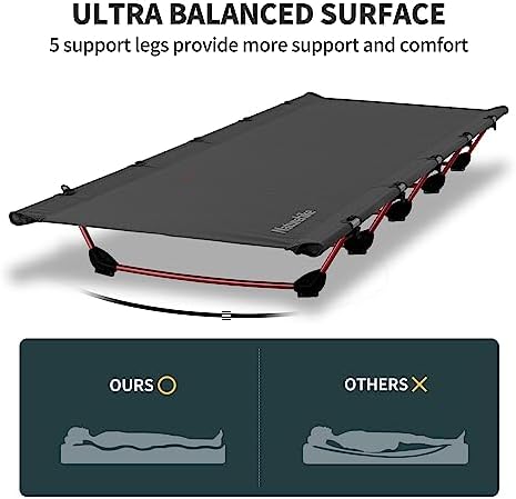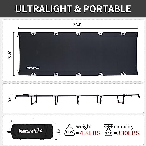 Naturehike GreenWild Camping Cot, Ultralight Folding Backpacking Cot, Supports 330lbs, Portable Camping Bed for Adults for Camping Hiking Travel Home, Black