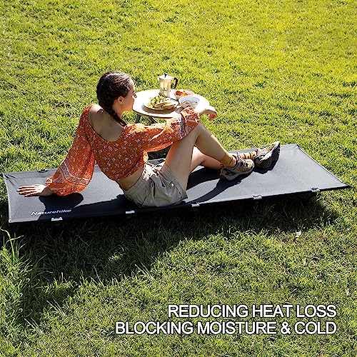 [𝘾𝙊𝙈𝙁𝙊𝙍𝙏𝘼𝘽𝙇𝙀 𝙎𝙇𝙀𝙀𝙋𝙄𝙉𝙂] Naturehike ultralight cot features breathable and tear-resistant 300D Oxford fabric cot sheet. The folding cot is 5.9” high, blocking moisture and cold at night, reducing heat loss, eliminating the discomfort of sleeping on rough ground. The fabric is also anti-static, which makes it difficult for air and ground dust to adhere to the cot.
