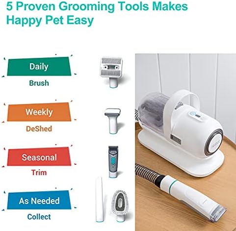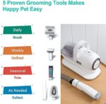【Vaccumable Pet Grooming Kit】: Traditional home grooming tools bring about a lot of mess and hair in the home. But our P1 Pro grooming kit with vacuum function collects 99% of pet hair into a vacuum container while trimming and brushing hair, which can keep your home clean, and there’s no more tangled hair and no more piles of fur spreading all over the house.