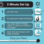 SET UP TIPS: Put it up in a couple minutes. Please visit www.nesotents.com/faq for instructions with wind set up tips and video