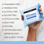 Facial cleansing wet wipes are ophthalmologist-, dermatologist-, & allergy-tested & gentle around the eye area. The effective formula removes up to 99% of makeup–even stubborn waterproof mascara–without tugging