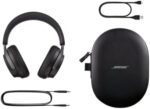Bose QuietComfort Ultra Headphones take everything music makes you feel to new highs. The high-end headphones start with world-class noise cancellation that’s quieter than its predecessors. Breakthrough spatial audio headphones allow your music to feel more immersive than ever before. Bose Immersive Audio takes what you’re hearing out of your head and places it in front of you for the most natural listening experience, no matter the content or source. CustomTune technology upgrades sound even more by analyzing your ear’s shape and adapting the audio performance so everything you listen to hits exactly as it should. Noise cancelling headphones with mic feature a revolutionary system of mics that focus on your voice, allowing you to enjoy crystal clear phone calls. These noise cancelling over-the-ear headphones keep the session going with up to 24 hours of battery life (up to 18 hours with Immersive Audio) and unrivaled comfort from luxe materials. The earcups wrap your ears in a soft hug while the band spreads pressure evenly. The sleek metal arms add a statement of sophisticated design for ideal audiophile headphones. Sync sound between your QC Ultra Headphones and a Bose smart soundbar with SimpleSync technology. The headphones also feature Snapdragon Sound Certification for Android and quick pairing with Google Fast Pair. Connect these wireless Bluetooth noise cancelling headphones to your devices with advanced Bluetooth 5.3. Keep track of what you have paired in the Bose Music app. The app makes setup quick and easy, gives you access to Adjustable EQ settings and more.