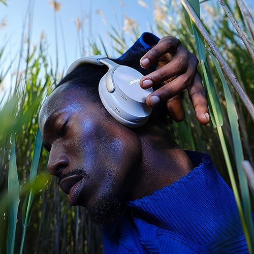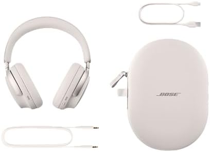 Bose QuietComfort Ultra Headphones take everything music makes you feel to new highs. The high-end headphones start with world-class noise cancellation that’s quieter than its predecessors. Breakthrough spatial audio headphones allow your music to feel more immersive than ever before. Bose Immersive Audio takes what you’re hearing out of your head and places it in front of you for the most natural listening experience, no matter the content or source. CustomTune technology upgrades sound even more by analyzing your ear’s shape and adapting the audio performance so everything you listen to hits exactly as it should. Noise cancelling headphones with mic feature a revolutionary system of mics that focus on your voice, allowing you to enjoy crystal clear phone calls. These noise cancelling over-the-ear headphones keep the session going with up to 24 hours of battery life (up to 18 hours with Immersive Audio) and unrivaled comfort from luxe materials. The earcups wrap your ears in a soft hug while the band spreads pressure evenly. The sleek metal arms add a statement of sophisticated design for ideal audiophile headphones. Sync sound between your QC Ultra Headphones and a Bose smart soundbar with SimpleSync technology. The headphones also feature Snapdragon Sound Certification for Android and quick pairing with Google Fast Pair. Connect these wireless Bluetooth noise cancelling headphones to your devices with advanced Bluetooth 5.3. Keep track of what you have paired in the Bose Music app. The app makes setup quick and easy, gives you access to Adjustable EQ settings and more.