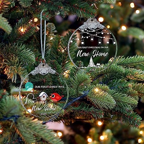 Home Home & Kitchen New Home Ornament 2023 with Gift Box, Housewarming Gifts for New House Christmas Ornaments Glass 3″, First Christmas in Our New Home Gifts for Home Decoration-New Home 1