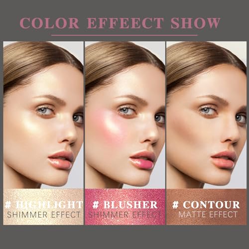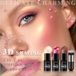 【Save Your Makeup Time】Simply apply the contour stick to the edge of your hairline and the sides of your face, apply the blush stick to your cheeks, apply the highlighter to the areas that need highlighting, and blend with your fingers or with a brush to help improve your skin tone and face contour for a natural, glamorous look.