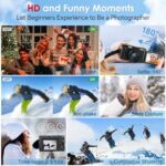 📸48MP UHD Photography Camera: The digital camera for photography has a 48MP image resolution and an 8MP CMOS image sensor. Autofocus features make 180° flip screen digital camera for beginners who want to quickly take HD photos, and take HD text or portraits up close without much work, and the 16x zoom digital camera for photo can also shoot landscapes from a distance, to capture all the moments you want with clarity!