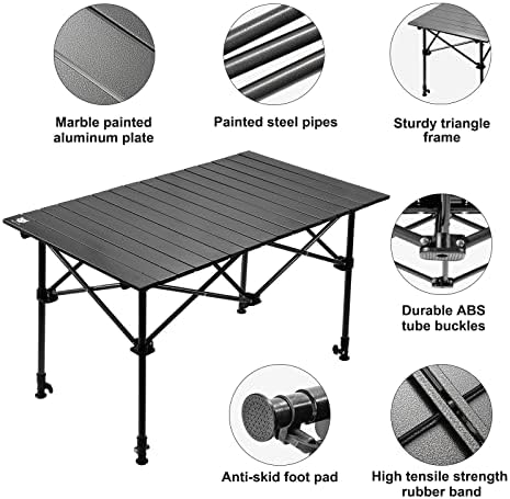 【Big open size & Adjustable height】open table size : 95x55cm, big enough for many situation like barbecue, camping, fishing and other outdoor activities. Adjustable table foot length from 50-95cm, fit for any height users, adults or kids. Caution: do not suggest pulling too height for shaking issues. Please set it on a appropriate height for stable use