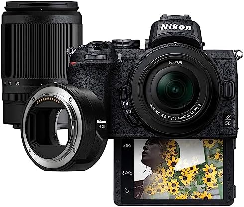 Home Electronics Camera Nikon Z 50 with Two Lenses and FTZ II Mount Adapter | Compact mirrorless stills/video camera with wide-angle and telephoto zoom lenses and adapter for using DSLR lenses | Nikon USA Model