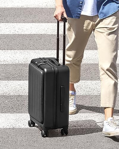 NINETYGO Carry on Luggage with Front Compartment, Airline Approved, 20-Inch Suitcases with Wheels for Trips, Men, Women, 22 X 14 X 9 Inches, Midnight Black