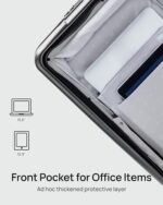 FRONT OPENING POCKET: coated with 1680D waterproof material, the front compartment can fit items up to 15.6” and can be opened at 45, 90 and 180 degrees.