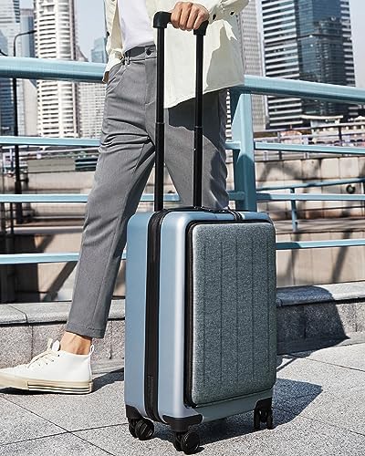 NINETYGO Carry on Luggage with Front Compartment, Airline Approved, 20-Inch Suitcases with Wheels for Trips, Men, Women, 22 X 14 X 9 Inches (Plein Air Blue)