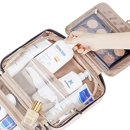 STURDY HOOK DESIGN – Special U-shape zippers design, take out the toiletries or zip up the toiletry case quickly. No more unpacking, digging through one bag, and laying your stuff on the bathroom counter. Just hang the bag up, grab what you need, and put it back in it.