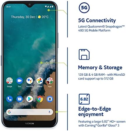 Nokia G50 5G | Android 11 | Unlocked Smartphone | US Version | 4/128GB | 6.82-Inch Screen | 48MP Triple Camera | Ocean Blue