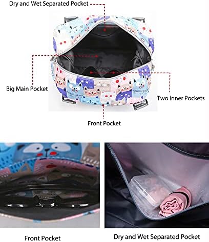 1、Waterproof and Lightweight: Stylish travel duffle bag is made of High density waterproof Oxford fabric, wear-resistant, lightweight. 2、Dimensions: (L*W*H) : 16.53in*6.30in*10.63in(42cm*16cm*27cm), Weight: only 1.1 pounds (0.5kg). 3、Large Capacity: The bag has a big main pocket, two inner pockets, a dry wet separation pocket; Exterior: a front pocket, can offer quick access to small items; the back of the bag has a zipper pocket, can hold your cell phone, boarding pass and other personal items. 5、 The detachable shoulder strap can be adjusted and locked to whatever length needed for carrying over the shoulder to alleviate the weight. 6、Dry and Wet Separated: The high density waterproof material can help you separate dry and wet items. 7、Airplane Friendly Travel Bag: The perfect carry-on compliant bag for airline travel. Integrated trolley sleeve slides over rolling luggage handle making airport travel a breeze. 8、Multifunctional: Use it as a travel bag, yoga bag, hospital bag, maternity bag, school duffle bag, or gym bag.