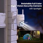 Bright Floodlights and Full-Color Night Vision: With built-in floodlights and full-color night vision, this camera provides super clear images even in extremely dark environments. You can also zoom in up to 4X to customize your best night vision experience.