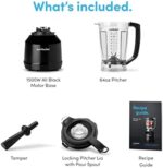 Included: (1) 1500W All Black Motor Base (1) 64oz Pitcher (1) Locking Pitcher Lid with Pour Spout (1) Tamper (1) Recipe Guide
