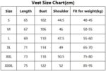 Size 3XL :Bust 122cm/48in, Shoulder 52cm/20.5in, Length 75cm/29.5in,Fit for weight 85-100kg.