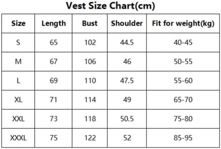 Size XL: Bust 114cm /44.9in, Shoulder 49cm/19.3in ,Length 71cm/28in,Fit for weight 65-80kg;