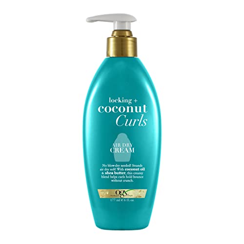 For curls that all envy with no blow-dry needed! Leave strands air dry soft with OGX Locking + Coconut Curls Air Dry Cream. With coconut oil and shea butter, this creamy blend helps hold bounce without the crunchiness. Hair is left soft, with smooth coils that bounce without the frizz. So you can keep those strands smelling like a tropical oasis without the heat! Apply a small amount to palm, rub hands together, then apply evenly to surface of damp (towel dried) hair working through to ends. Scrunch hair and let dry naturally. Tighten those tendrils up with our OGX Locking + Coconut Curls styling collection!