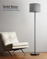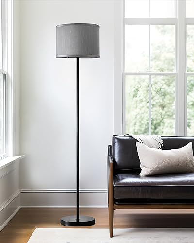 【Perfect for modern home decoration】Linen Grey Lamp shade with black pole, The tall lamp helps to brightened up the room and the lamp has simple design that matches perfectly with furniture. This room light has a pedal switch to turn it on and off. Convenient and great overall design!