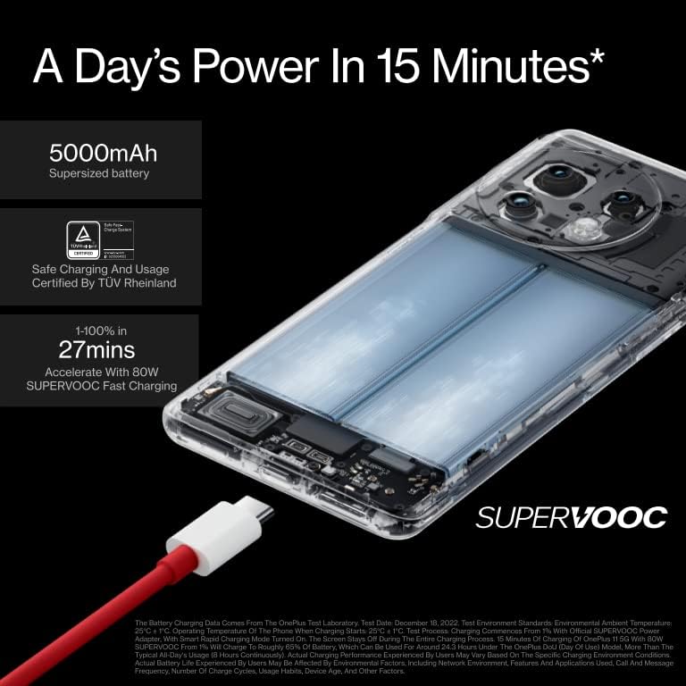 Charge Ahead: The OnePlus 11 5G comes with a 80W SUPERVOOC charger straight out of the box. Improved battery health & active cooling will ensure your OnePlus 11 will have improved battery longevity.