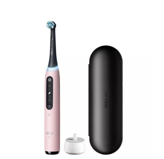 The iO is Oral-B’s best technology: Clinically Proven 100% Cleaner teeth vs a regular manual toothbrush. A Whiter smile starting day 1 by removing surface stains. The i05 coaches you to a perfect clean with Position Detection through Artificial Intelligence, this is real time personalized coaching. The accompanying App shows your daily brushing report through Artificial Intelligence. Having 5 Brush Modes (Daily Clean, Whiten, Sensitive, and Super Sensitive) Oral-B is on your team for your everyday brushing task. A Round head and gentle micro-vibrations, the Magnetic interaction delivers smooth, harmonious motion through a Synchronized cleaning action (micro-vibrations synced with oscillations). A Built-in-2-Minute Timer ensures an even easier experience, helping you get an optimal clean on all your teeth. We keep the time, so you don’t have to. Delivering the perfect pressure is done by having a Pressure Sensor. The Pressure Sensor Indicates optimal cleaning pressure and warns of over pressure. With an accompanying travel case, you’ll have a fresh clean everywhere you go. We’re with you on your next trip or even your mid-day on-the go brushing! Best of all, it is brought to you by Oral-B—the #1 brand used by dentists worldwide.* *Based on surveys of a representative worldwide sample of dentists carried out for P&G regularly. Do not use on children under age 3. Replace brush (head) every 3 months or sooner if brush head becomes worn.