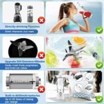 🍹【Easy to Use】: Button switch, Double-click the button to start, again click to stop. Detachable cup,easy to clean. The fresh juice blender is easy to clean by adding water and start the self-cleaning mode. The power button with indication lighting design shows you whether the product is safe and ready to work. It can be directly drained for cleaning.Please keep the cup clean and dry after use.
