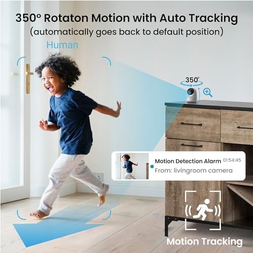【350°security camera】This security camera indoor wireless can auto rotation with horizontal 350°and vertical 110°, help you monitor every angle of any room, no blind spot.