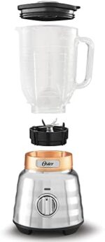 Enjoy all the flavors blended together in your own perfect concoctions with this Oster 1100-Watt Beehive-Shaped Blender, a sleek and stylish kitchen appliance designed to make blending a breeze. With its powerful 1100-watt motor and premium die-cast metal construction, this kitchen blender is built to last and delivers outstanding performance. The blender’s beehive shape not only looks great on your countertop, but it also helps to create a vortex for more efficient blending. This small appliance features an easy-to-use speed dial with 3 speed settings, allowing you to mix a variety of ingredients to your desired consistency. The blender also comes with a 7-cup Boroclass glass jar, blending blades, a lid, a base, and a user manual, making it easy to get started right out of the box. Whether you’re making smoothies, soups, or sauces, this easy-to-use blender is the ideal kitchen appliance to help you create delicious and nutritious meals. Get this Oster Beehive Performance Blender and start blending like a pro!