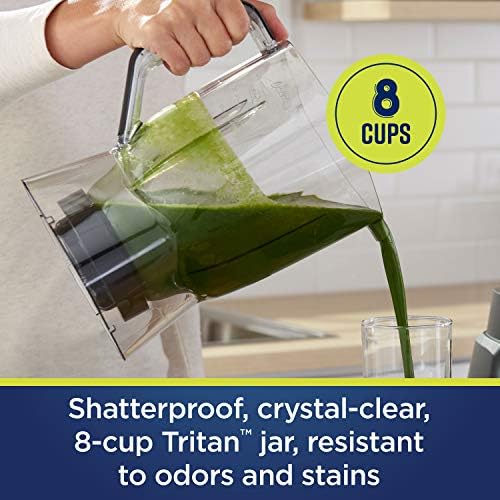 TRITAN JAR: 8-cup Tritan jar is dishwasher-safe, BPA-free, and resistant to stains and odors