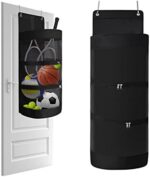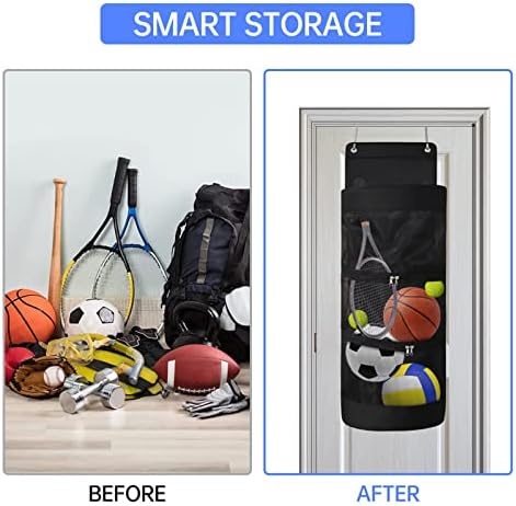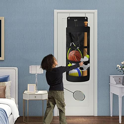 Quality: This Sports Equipment Organizer Made of heavy-duty oxford-cloth and nylon mesh, durable and wear-resistant, strong hooks can securely fix the bag to any door.