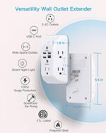 【Surge Protector Outlet】- 3 complementary Surge Protection Circuits, TVS(transient voltage suppressor) MOV(metal oxide varistor) GDT(gas discharge tube), with response speed less than 1Ns, and minimum energy-absorbing capacity of 1050 Joules, much more quickly and reliably than the traditional MOV surge protector circuit. (“SURGE PROTECTED” indicator light on to show your devices are protected)