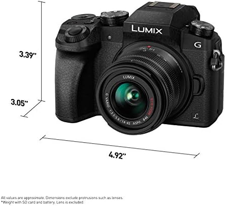 The professional grade Panasonic Lumix 4K Digital Camera DMC G7KK accepts over 24 compact lens options built on the next generation interchangeable lens camera (ILC) standard (Micro Four Thirds) pioneered by Panasonic. Its “mirrorless” design enables a lighter, more compact camera body while also offering cutting edge video, audio, creative controls, wireless, intelligent focusing and exposure technologies not possible with traditional DSLRs. With the exclusive Lumix 4K PHOTO (~8MP, 30/60 fps), simply pause that perfect moment from video to produce printable high resolution photos. A high resolution 17.5mm, 0.7x OLED eye viewfinder (2,360K dot) matches up to exactly how you intended to see the image even under direct sunlight. For connectivity convenience, the G7 includes 3.5mm and 2.5mm microphone & remote ports, USB 2.0 and a micro HDMI (Type D) terminal. The G7 can be combined with the DMW FL580L External Flash, the DMW MS2 Stereo/Shotgun Microphone and many other accessories. It’s also compatible with newer BUS Class UHS I/UHS II SDXC/SDHC SD cards capable of storing high resolution 4K videos and meeting the demands of 4K Photo and Raw mode burst shooting.