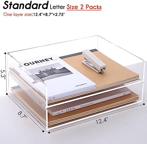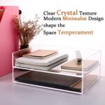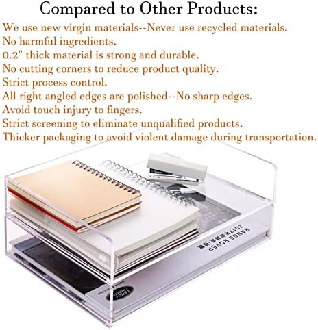 Rigorous Process: Handmade acrylic file storage each product we carefully selected to ensure product quality, hand polished, rounded edges, warm and delicate feel, thickened packaging transport safety and solid, can be used as office file organizer, enhance the quality of space. Made of acrylic material, there are 2 trays can be stacked, can be pulled out, the bottom has a track bar, you can also choose to buy 4 or 6 can be stacked together, large capacity.
