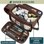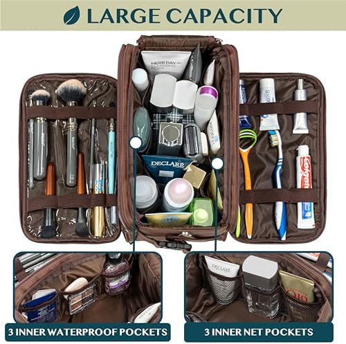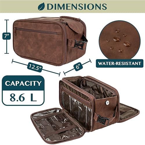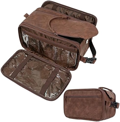 WATER RESISTANT TOILETRY BAG DOPP KIT: This toiletry case kit is made from high density PU leather with added side padding for durability and extra protection to keep your toiletries safe and protected during travel. The lining is water-resistant to prevent liquid splashes from entering the bag or luggage. The toiletry bag also offers excellent wet/dry separation so you can keep wet accessories in a separate compartment from dry toiletries during camping, road trips, weekenders.
