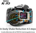 IN BODY SHAKE REDUCTION: PENTAX K 70 features the in body Shake Reduction mechanism with a compensation effect of 4.5 shutter steps; It works effectively with all PENTAX interchangeable lenses