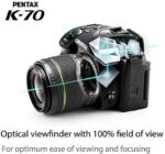 OPTICAL VIEWFINDER WITH 100 percent FIELD OF VIEW: PENTAX K 70’s viewfinder provides a large, sharp view of the subject, allowing you to capture it exactly the way you want