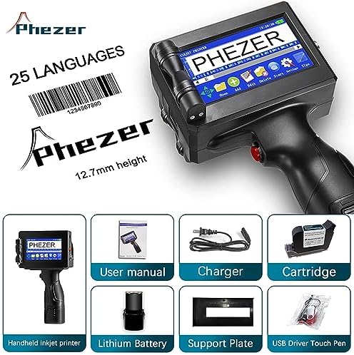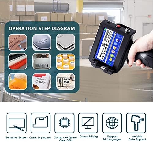 [8+ Printing Contents and 10+ Printing Surface Allowed]: This inkjet printer equipped a 4.3 inch LCD touch screen (supports input/editing directly) is suitable for printing text, digital, QR code, barcode, production date, time, logos on the surface of paper, boards, carton, stone, pipe, cable, metal, glass, plastic, cloth etc directly. 25 Languages available and 360 degree all-round printing supported along with the positioning plates. The height can be 2-12.7mm, and length is not limited.