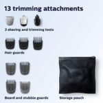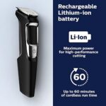 The Philips Norelco Multigroom 3000 is a all-in-one trimmer with everything you need, and nothing you don’t. Our toughest multipurpose trimmer boasts tempered steel cutting blades that self-sharpen and won’t rust. The trimmer includes 13 pieces to trim your face and head, including a full-size steel trimmer, steel detailer, nose and ear trimmer, 3 hair cutting guards, 3 beard trimming guards, 1 stubble trimming guard, and a storage bag. The durable trimmer includes impact-resistant cutting guards, a steel reinforced motor, and a powerful lithium battery delivering 60 minutes of run time. The blades and guards can be rinsed clean, and the device comes with a 45 day risk-free trial and a full 2-year warranty.