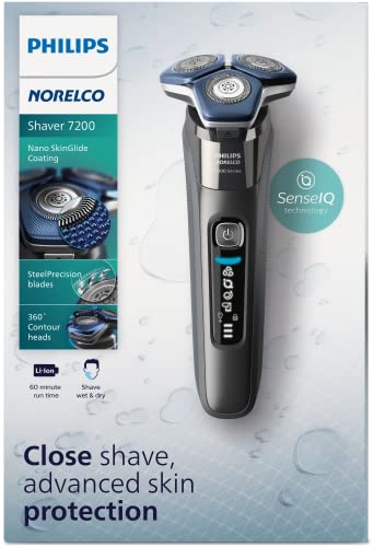 The Philips Norelco Shaver 7200 glides smoothly over your skin, while cutting each hair close – even on 3-day beards. Equipped with SenseIQ technology, the shaver senses, adapts and guides on the correct motion, for better skin protection. USB-A charging cable included (wall power adapter not included).