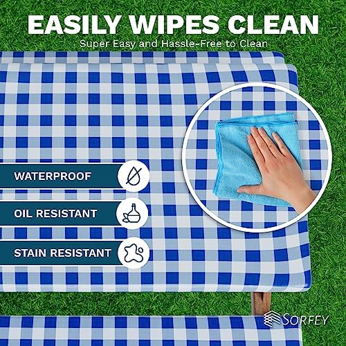 CASSIC CHECKEDESIGN- The Sorfey tablecloth set comes with a classic checkedesign to add that familiar feeling of a rustic, hearty get together. Our cloths are the perfect choice that effortlessly blends into any backdrop whether you’re with family or at a professional booth- use for picnics, BBQs, garden lounging, beach, parks- whether indoors or outdoors, our tablecloths enhance any dining experience.