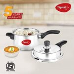 Pigeon gives you ergonomically designed pressure cooker combo, featuring a capacity of 3 litres and a smart outer lid design, the Pigeon Favourite Stainless steel pressure cooker is an ideal cookware for small to medium families and can help cook your favourite dishes in a jiffy while retaining its taste. Its special induction base makes it compatible with both gas stove and induction cooktops, adding to its versatility. Use this pressure cooker to cook lip-smacking sabzis, dal, rice, meat and much more. Made from high quality stainless steel and featuring highly ergonomic safety handles, The Pigeon Favourite pressure cooker is built for long-lasting durability while providing excellent ease of use. This material also enables even distribution of heat, leading to faster and more efficient cooking. Featuring a gasket release system with metallic safety plug and precision weighted valve, this pressure cooker has safety at the forefront while cooking.