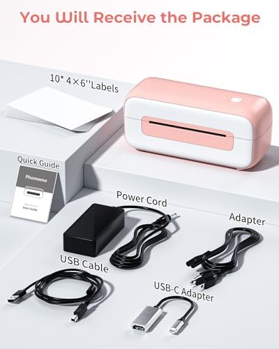 Pink Label Printer, Thermal Label Printer 4×6, Shipping Label Printer for Small Busines