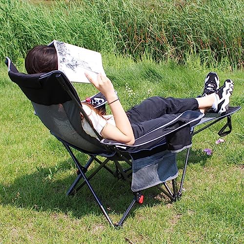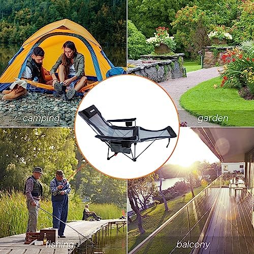 【Sturdy and Durable】: The camping chair features a sturdy stainless steel frame that can support up to 264 pounds, using wear-resistant fabric and breathable mesh material to ensure your body stays cool and comfortable.