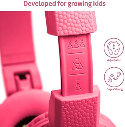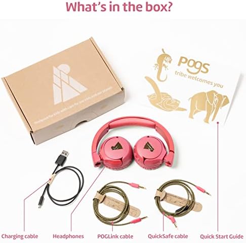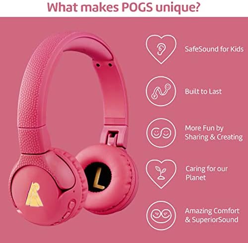 Home Electronics POGS Kids Bluetooth Wireless Headphones | The Gecko | Foldable and Durable Headphones for Kids 3+ with Volume Control, Microphone, Volume Limiter 85 dB | Music-Sharing Function (Bluetooth) (Pink)