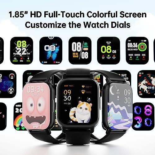 1.85-inch Screen and Customizable Watch Faces: This fitness watch features a 1.85-inch full-touch color screen, offering excellent display quality and a smoother user experience, enhancing your visual and operational experience. We have carefully designed a beautiful UI and offer over 100+ watch faces for you to choose from. You can also select your favorite photos (such as family pictures, pet photos, selfies) as your watch background, showcasing your personality.