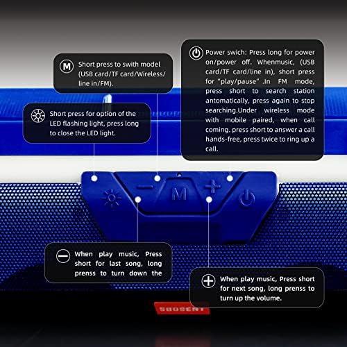 Home Electronics Portable Bluetooth Speakers with Light, Wireless Bluetooth Speaker,Wireless Bluetooth Speakers V5.1USB Card, Micro SD Card and FM Radio, Bluetooth for Outdoor, Indoor, Travel, Beach, Camping (Blue)