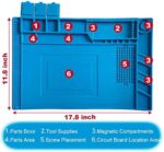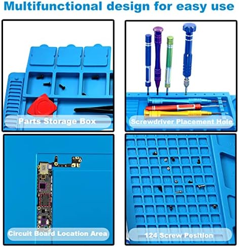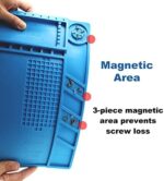 Heat Resistant – Can withstand temperatures up to 932°FSoft and durable, rollable for easy storageWith magnetic area to prevent loss of small partsOversized—enough work areaCool colors – easy to distinguish from electronic parts or screwsWater and oil proof – washableKeep the work area clean and tidy
